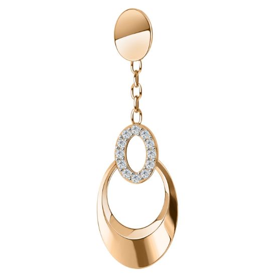 Дизайн: Подвеска состоит из двух пересекающихся кругов. Верхний круг инкрустирован фианитами, которые создают эффект сияния. Нижний круг выполнен из гладкого полированного золота, что придаёт украшению утончённый вид.