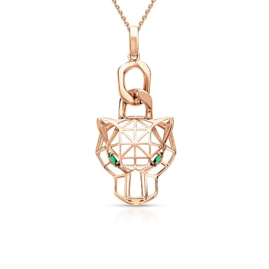 Эта изысканная подвеска выполнена в виде головы пантеры из золота, украшенной двумя яркими фианитами, которые подчеркивают глаза хищницы. Геометрический стиль и четкость линий придают изделию современный и утонченный вид. Подвеска станет прекрасным дополнением к любому образу, добавляя нотку роскоши и загадочности.