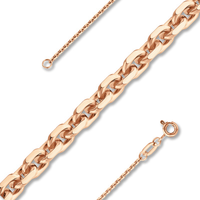 Эта изысканная цепь выполнена из красного золота 585 пробы и отличается классическим якорным плетением.