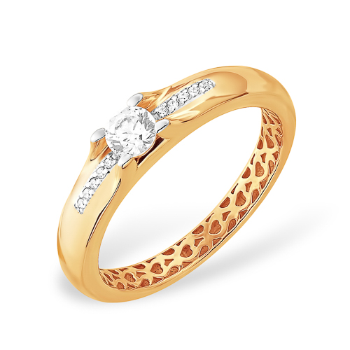 Элегантное кольцо из красного золота 585 пробы с изысканным дизайном. Украшение выполнено в виде двух переплетающихся полос, одна из которых инкрустирована сверкающими фианитами. Этот стильный аксессуар подчеркнет вашу утонченность и станет прекрасным дополнением как к повседневному, так и к праздничному образу.