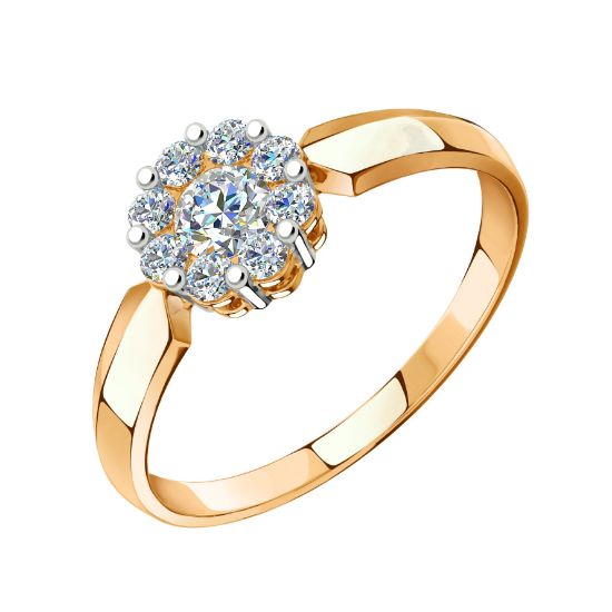 Элегантное кольцо из красного золота 585 пробы, украшенное центральным фианитом и окружённое россыпью фианитов, станет идеальным выбором для особых случаев. Этот изысканный аксессуар подчеркнёт вашу женственность и утончённый вкус.