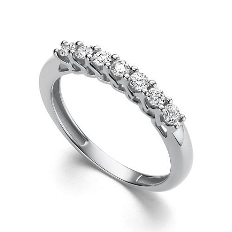 Это кольцо из белого золота с бриллиантами выполнено в стиле «дорожка». Оно украшено несколькими бриллиантами, расположенными в ряд вдоль верхней части кольца. Такой дизайн подчеркивает элегантность и утонченность украшения.