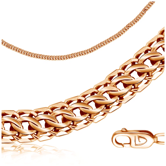 Этот браслет выполнен из красного золота 585 пробы и отличается уникальным плетением «Питон». Плетение «Питон» — это разновидность плетения «Бисмарк», которая считается одной из самых сложных и прочных. Благодаря особому переплетению звеньев и алмазной грани, браслет обладает повышенным блеском и выглядит эффектно даже без дополнительных элементов.