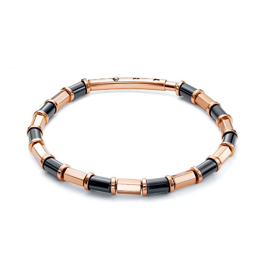 Материалы: Красное золото 585 пробы, обеспечивают долговечность и комфорт в носке. Чёрные элементы гармонично сочетаются с полированными золотистыми вставками.