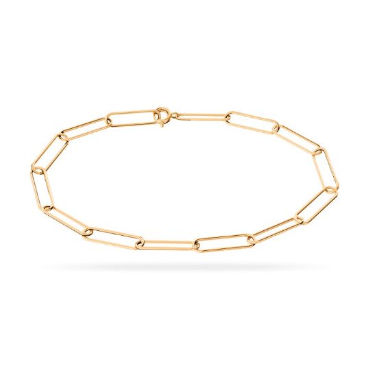 Элегантный золотой браслет с минималистичным дизайном станет идеальным дополнением к вашему образу. Выполненный в виде цепочки с крупными звеньями, он подчеркнет вашу утонченность и стиль.