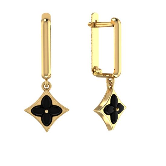 Дизайн: Геометрическая форма в виде ромба подчёркивает современный стиль украшения. Центральный элемент в виде цветка из оникса добавляет изделию оригинальности и шарма.