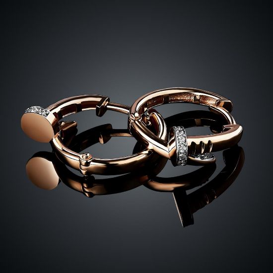 Вставка: изящная инкрустация фианитами на одном из элементов серёг — добавляет изделию роскоши и «играющего» света.
