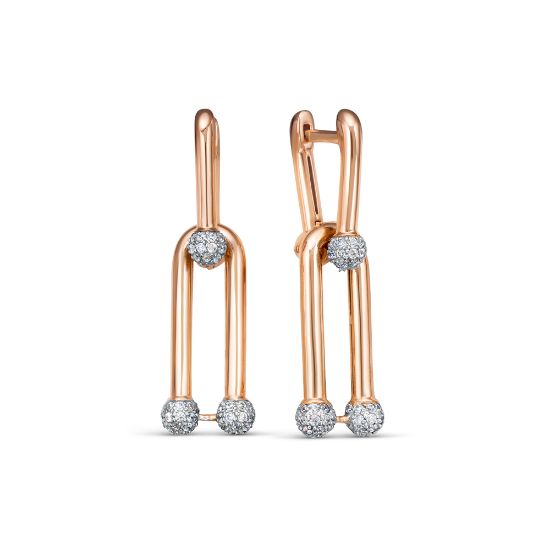 Эти серьги выполнены из высококачественного красного золота 585 пробы, что гарантирует их долговечность и устойчивость к износу. Украшение дополнено сверкающими фианитами, которые придают изделию изысканность и блеск.