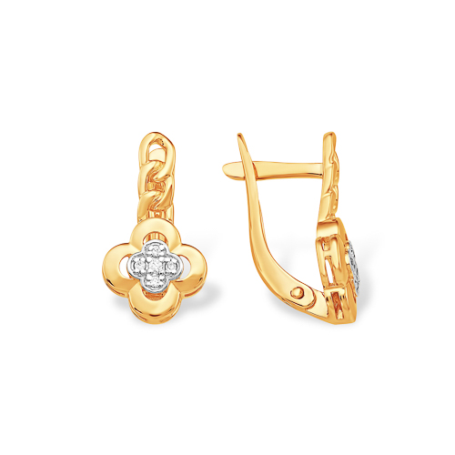 Эти изысканные серьги выполнены из золота и украшены фианитами, которые придают им блеск и элегантность. Дизайн в форме цветка делает их универсальным аксессуаром, подходящим как для повседневного образа, так и для торжественных мероприятий.