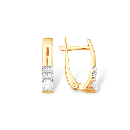 Изысканные серьги выполнены из золота 585 пробы, что гарантирует их долговечность и благородный блеск. Украшение дополнено сверкающими фианитами, которые придают изделию особую элегантность и утонченность.