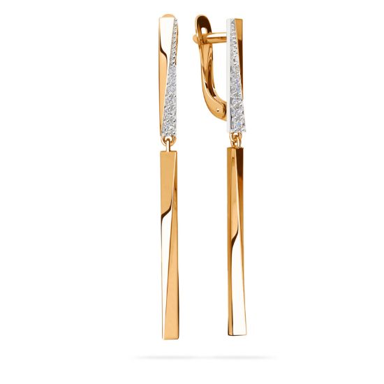 Эти изысканные серьги станут ярким акцентом вашего образа. Они выполнены из красного золота 585 пробы, что гарантирует их долговечность и насыщенный цвет. Украшение дополнено сверкающими фианитами, которые придают серьгам элегантность и утонченность.