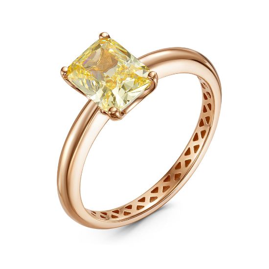 Вставка: бриллианит квадратной огранки с ярким жёлтым оттенком. Бриллианит имитирует блеск и игру света настоящего бриллианта, при этом более доступен по цене.