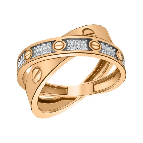 Вставка: россыпь сверкающих фианитов, аккуратно размещённых в декоративных сегментах, притягивает взгляды и делает кольцо по-настоящему роскошным.