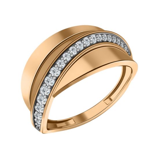 Элегантное кольцо из красного золота 585 пробы с фианитами — это изысканное украшение, которое подчеркнет вашу утонченность и стиль. Его дизайн сочетает плавные линии и сверкающие камни, создавая эффект роскоши и гармонии.