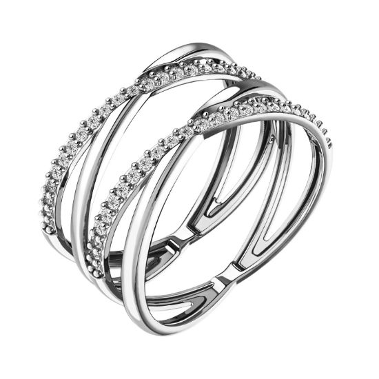 Откройте для себя изысканность современного ювелирного дизайна с этим уникальным кольцом. Сочетание плавных линий и мерцающих фианитов создаёт по-настоящему завораживающий аксессуар, который станет изюминкой любого образа.