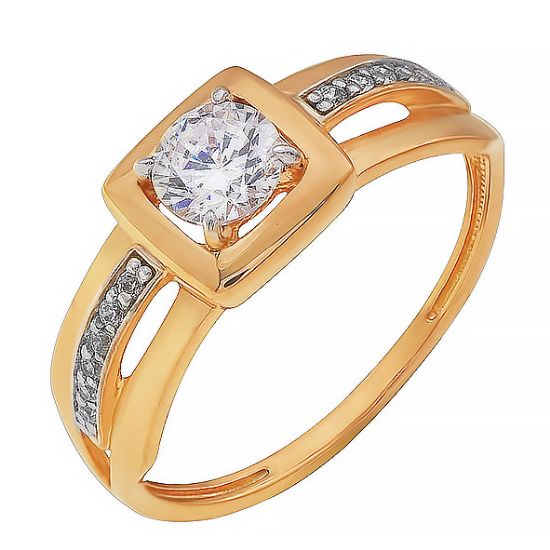 Центральный элемент: крупный круглый фианит в эффектной квадратной оправе. Камень сверкает, словно бриллиант, привлекая восхищённые взгляды.