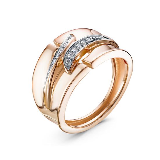 Представляем изысканное кольцо, сочетающее в себе утончённость дизайна и благородство материалов. Изделие выполнено из высококачественного золота тёплого оттенка, что придаёт украшению особую изысканность и шарм.