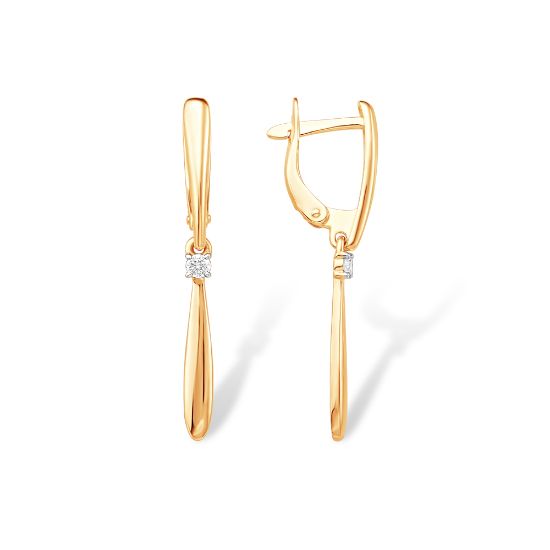 Ювелирные серьги-подвески с фианитами из красного золота 585 пробы. Примерный вес: 2,73 (гр.)