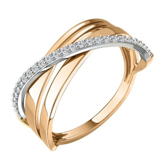 Инкрустация фианитами: изящная полоса из мелких фианитов украшает белую часть кольца, усиливая его блеск и подчёркивая утончённость.