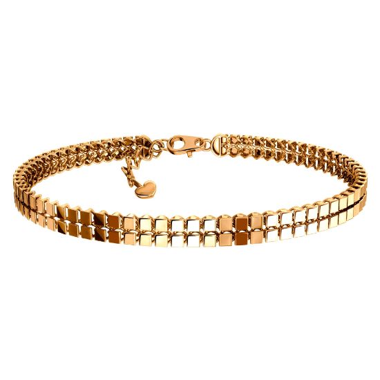 Элегантный золотой браслет из золота 585 пробы станет изысканным украшением для любого образа. Его дизайн сочетает в себе строгие геометрические формы квадратных звеньев и утонченную нежность подвески в виде сердца.