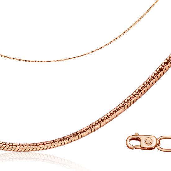 Цепочка из красного золота 585 пробы и отличается уникальным плетением «Снейк», которое напоминает чешую змеи. Такое плетение не только придает изделию стильный и элегантный вид, но и делает его более прочным и устойчивым к деформациям.