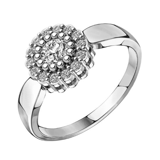Вставка: центральный фианит окружен ореолом из мелких камней, создающих эффект сияния.