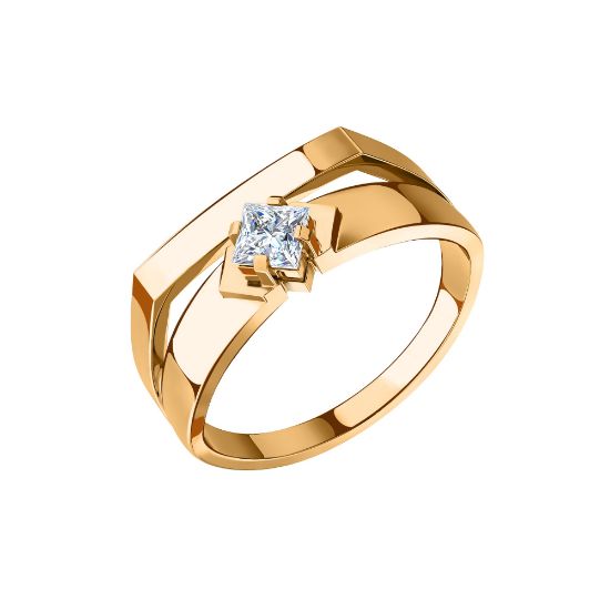 Это кольцо выполнено из золота и украшено квадратным камнем, огранённым в стиле «принцесса». Вот его основные особенности: