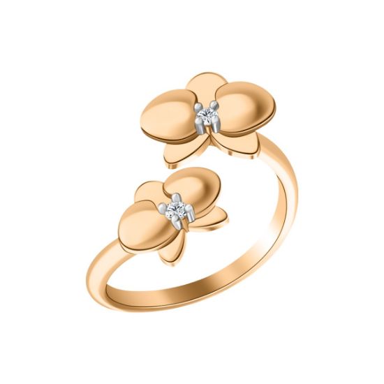Ювелирное кольцо из красного золот 585 пробы с фианитами выполнено в изящном дизайне, напоминающем цветы орхидеи.