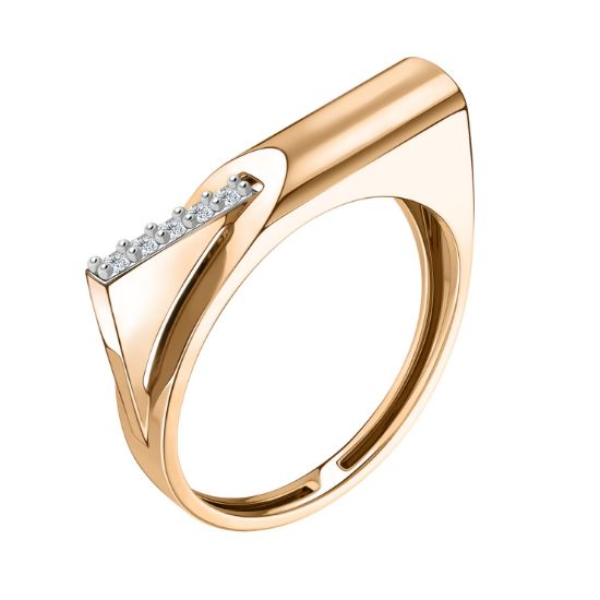 Элегантное золотое кольцо с фианитами, выполненное в современном дизайне. Центральный элемент украшен сверкающими фианитами, которые создают эффектный блеск и подчёркивают утончённость изделия. Геометрический узор добавляет кольцу динамики и делает его идеальным выбором для тех, кто ценит стиль и оригинальность.