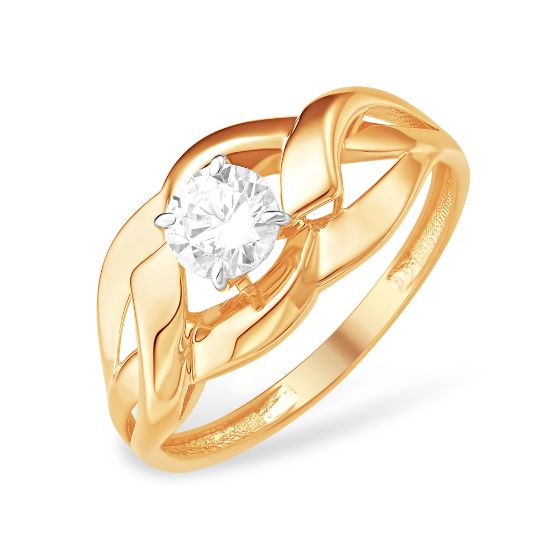 Элегантное кольцо из красного золота 585 пробы с фианитом станет прекрасным украшением для любого случая. Его изысканный дизайн с переплетающимися линиями и центральным камнем создает ощущение легкости и утонченности.