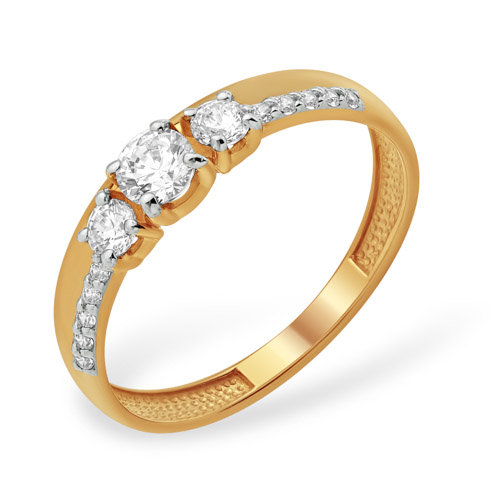 Элегантное кольцо из красного золота 585 пробы станет прекрасным украшением для любого случая. Центральным элементом дизайна являются три крупных фианита, закрепленные в изящной оправе. По бокам расположены ряды мелких фианитов, которые создают эффект сияния и подчеркивают утонченность изделия.