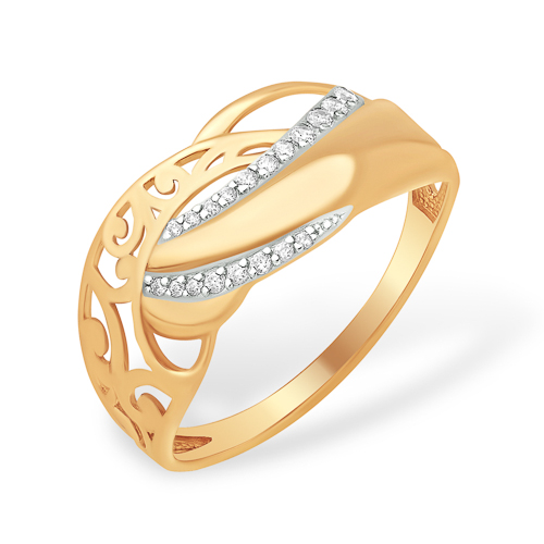 Элегантное кольцо из золота 585 пробы с изысканным дизайном станет вашим любимым украшением. Центральным элементом украшения является крупный фианит, окруженный изящной дорожкой из мелких фианитов, что придает изделию особую утонченность и блеск.