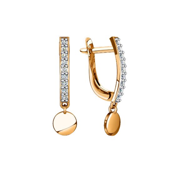 Эти изысканные серьги станут прекрасным дополнением к вашему образу. Выполненные из красного золота 585 пробы, они украшены сверкающими фианитами, которые придают изделию элегантность и утонченность.