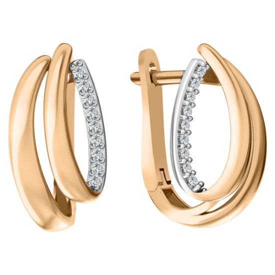 Серьги из золота 585 пробы — воплощение элегантности и утончённого вкуса. Их уникальный дизайн сочетает плавные линии и сияющие фианиты, создавая эффектный акцент, который подчеркнёт вашу индивидуальность.
