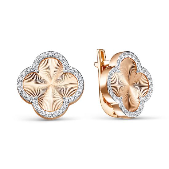 Эти изысканные серьги станут ярким акцентом вашего образа. Выполненные из красного золота 585 пробы, они украшены фианитами, которые придают украшениям блеск и элегантность. Дизайн в форме клевера символизирует удачу и гармонию, а утонченная гравировка добавляет изделию особую изысканность.