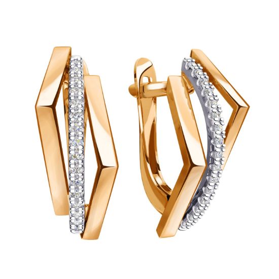 Эти серьги из красного золота 585 пробы выполнены в геометрическом стиле, что придаёт им современный и элегантный вид. Их дизайн сочетает в себе строгие линии и изысканные детали, создавая гармоничный образ.