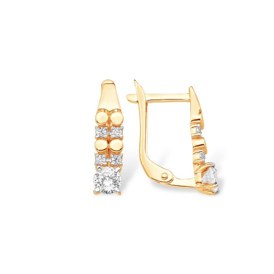 Эти серьги выполнены из золота и украшены бриллианитами и фианитами, что делает их изысканным и элегантным украшением.