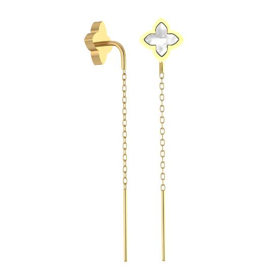 Дизайн: Серьги выполнены в минималистичном стиле с акцентом на верхнюю часть, украшенную перламутром в форме клевера. Это придаёт украшению элегантность и утончённость.