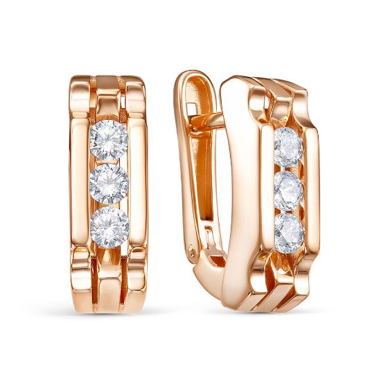Эти изысканные серьги станут прекрасным дополнением к вашему образу. Выполненные из красного золота 585 пробы, они украшены тремя бриллианитами, которые придают украшениям блеск и элегантность.