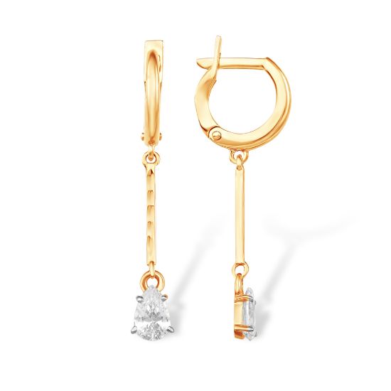 Серьги выполнены из золота 585 пробы и украшены фианитами, что придаёт им изысканность и блеск.