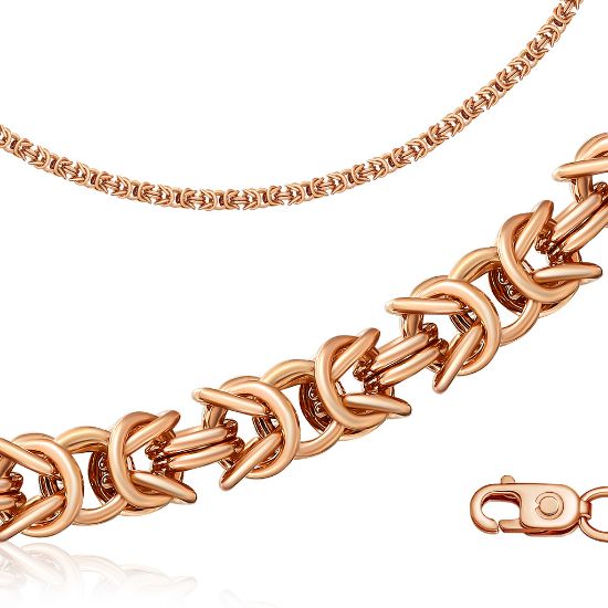 Этот изысканный браслет выполнен вручную из красного золота 585 пробы и отличается уникальным плетением «Византия». Каждое звено тщательно соединено, что обеспечивает прочность и долговечность изделия.