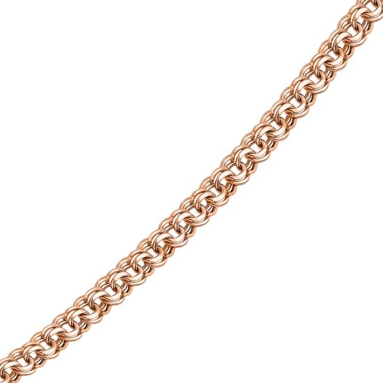 Элегантный золотой браслет с плетением «Бисмарк/Гарибальди» — это воплощение стиля и надежности. Изготовлен из красного золота 585 пробы, он отличается прочностью и долговечностью. Плетение «Гарибальди» представляет собой объемное якорное соединение с парными круглыми звеньями, что делает цепь не только красивой, но и практичной.